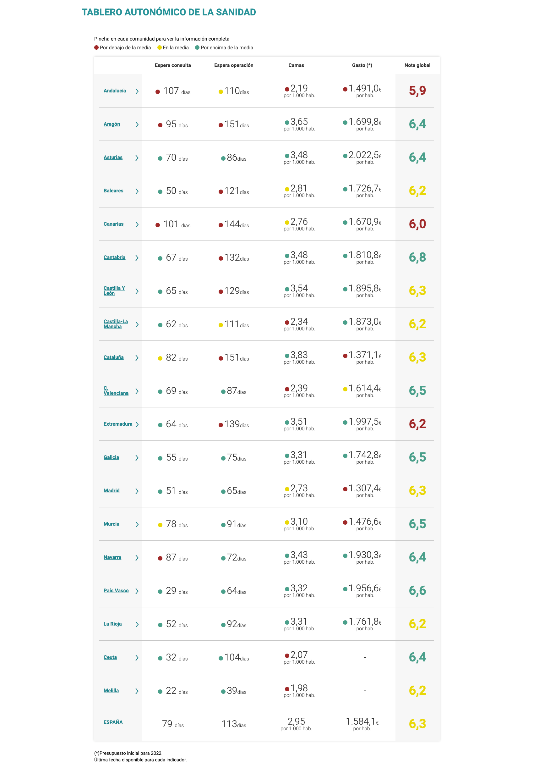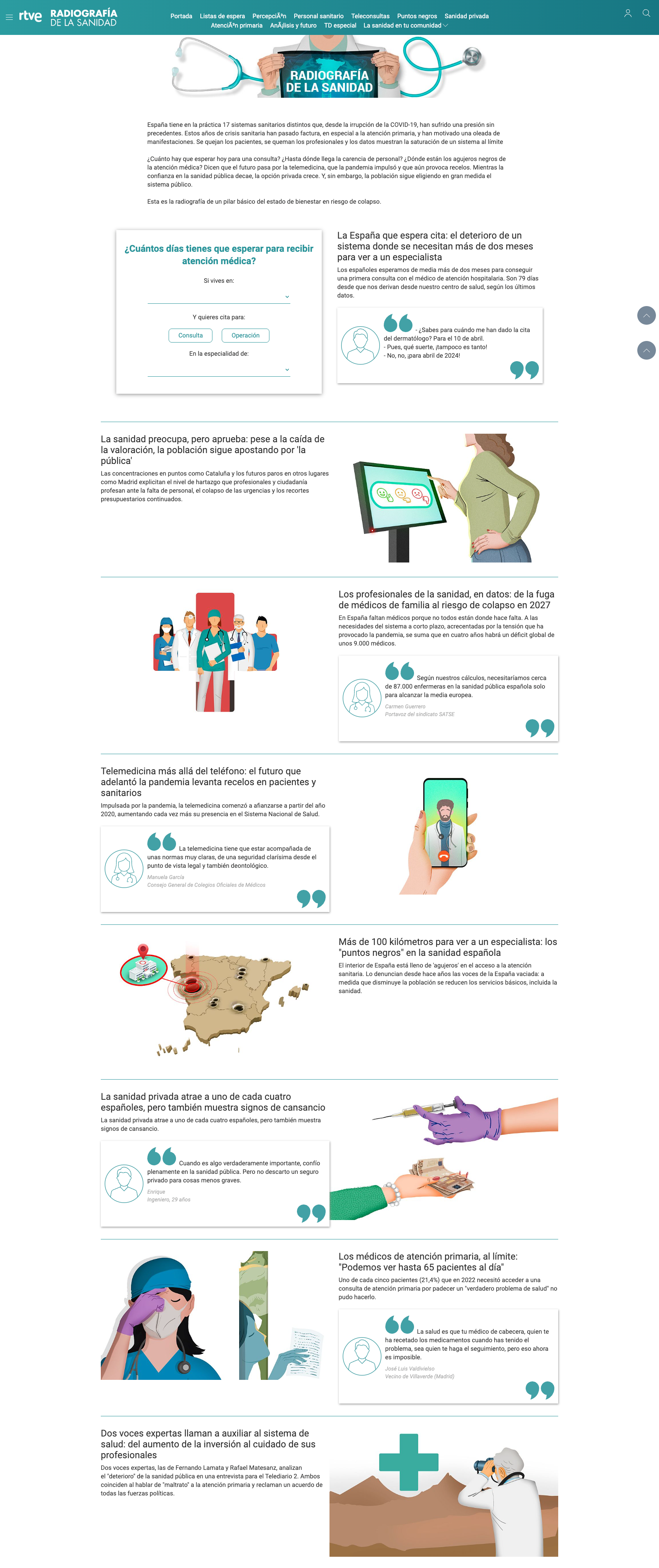 Diseño de la infografía Radiografía de la sanidad para ilustrar el reportaje sobre la situación de la sanidad en cada Comunidad Autónoma.